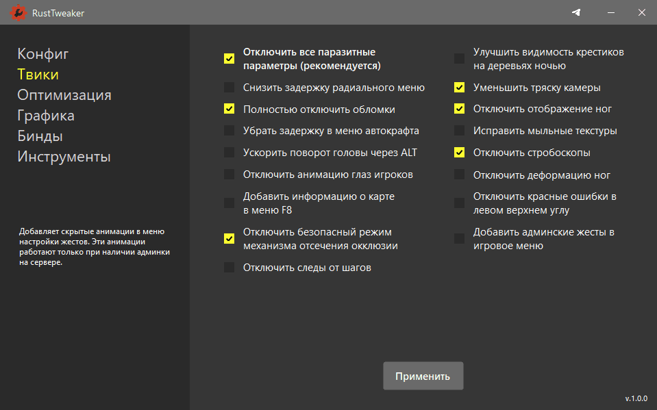Твикер обновляется ежемесячно, получая новые функции и оперативно реагируя на изменения игры